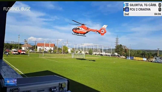 0Meciul disputat vineri, 6 octombrie, între Gilortul Târgu Cărbunești și FCU Craiova 2, din Liga a III-a, a fost întrerupt, în minutul 83, pentru aterizarea elicopterului SMURD pentru a prelua un pacient aflat în stare gravă, care a necesitat transferul la un alt spital.