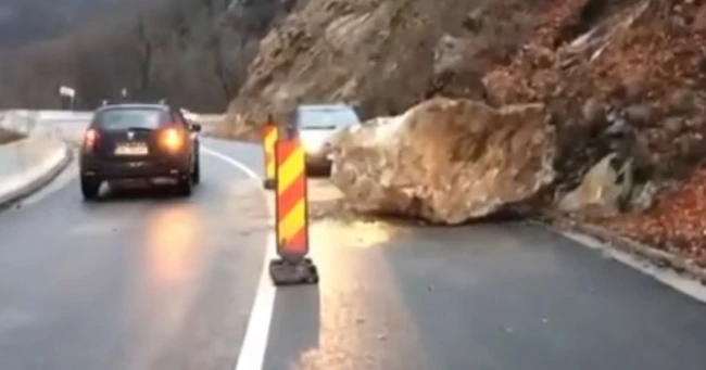 O stâncă a căzut pe drumul care traversează Defilul Jiului. Circulaţia este blocată pe un sens