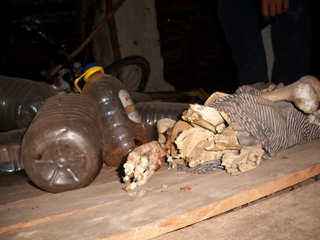 Oase umane găsite de poliţişti în podul unei case din Cruşeţ: proprietarii nu au vrut să renunţe la ele de temă să nu fie blestemate
