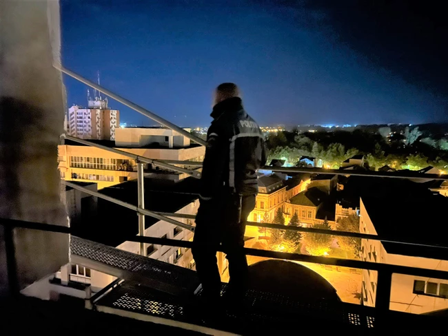 Poliţiştii din cadrul Poliţiei Municipiului Târgu Jiu au fost sesizaţi de un bărbat, în noaptea de 10 spre 11 octombrie 2023, despre faptul că pe schela amplasată pentru anveloparea blocului a observat o persoană.