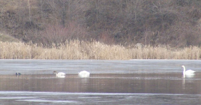 12 lebede au poposit pe lacul Sâmbotin din comuna Schela.