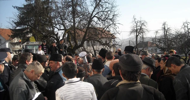 Ţăranii riscă să rămână fără pământul pe care îl muncesc de 65 de ani. Este vorba de o suprafaţă de 50 de hectare de teren, pe care localnicii o deţin din anul 1945, în urma reformei agrare. „Avem bucăţi de teren de 65 de ani în stăpânire. Primarul şi boieriţa ne-au făcut cel mai mare rău, pentru că vor să ne ia pământul. Vom merge şi la Bucureşti să ne căutăm dreptate pentru că nu este legal. Îşi bate joc de oameni“, a spus un localnic. Opt jandarmi şi şapte poliţişti au fost prezenţi la miting pentru a asigura liniştea şi ordinea publică.