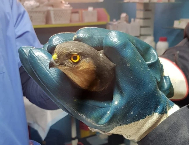 Uliu rănit, tratat de un medic veterinar. Pasărea răpitoare a fost găsită în curtea unei case din municipiul Târgu Jiu