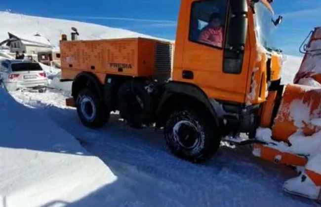 VIDEO Autoturism BMW scos cu un utilaj de deszăpezire dintre nămeţii de zăpadă din staţiunea Rânca