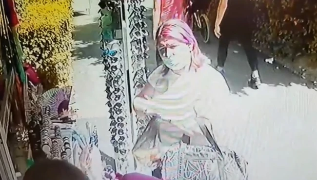 pe imagini se observă cum hoaţa îşi probează brăţara, se uită la vânzător să vadă dacă este atent, îşi acoperă mâna cu o plasă şi pleacă în scurt timp.