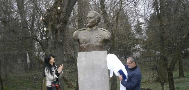 VIDEO Moment penibil la dezvelirea bustului eroului Popilian. Autorităţile nu au găsit scară şi pânză ca să acopere monumentul