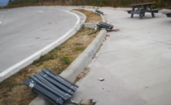 VIDEO Parcare vandalizată pe Drumul Naţional 66. Coşurile de gunoi au fost distruse şi furate