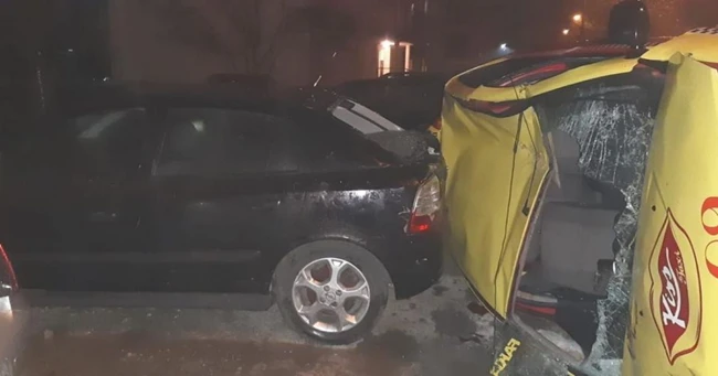 VIDEO Pasager rănit grav într-un taxi. Maşina s-a răsturnat după ce a lovit trei autoturisme parcate regulamentar