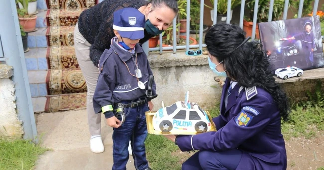 VIDEO Surpriza făcută de poliţiştii gorjeni unui băieţel de ziua sa de naştere