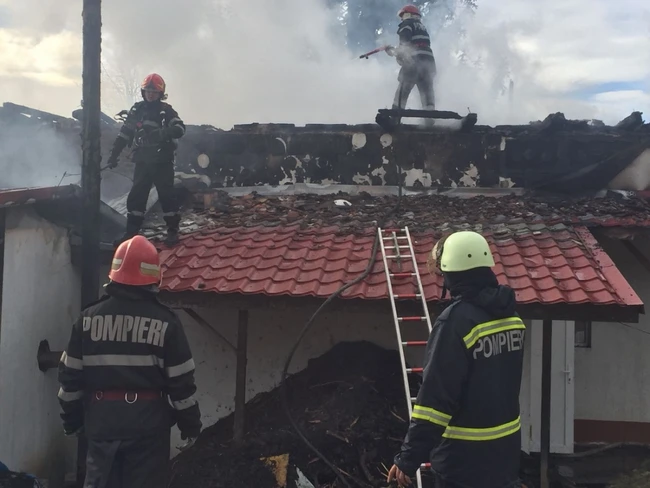 0Pompierii intervin pentru stingerea incendiului FOTO: ISU Gorj