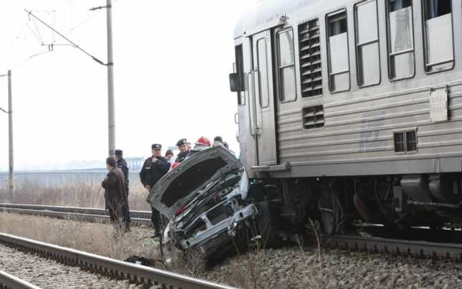 O femeie a murit după ce maşina-n care se afla a fost lovită de tren