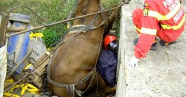 La faţa locului s-a deplasat un echipaj al Serviciului pentru Situaţii de Urgenţă Iernut, care după aproape o oră de încercări a reuşit să ridice calul fără a pune în pericol viaţa mureşeanului. Bărbatul a fost transportat la SMURD Tîrgu Mureş pentru mai multe investigaţii. Acesta are ambele picioare fracturate, însă se află în afara oricărui pericol.