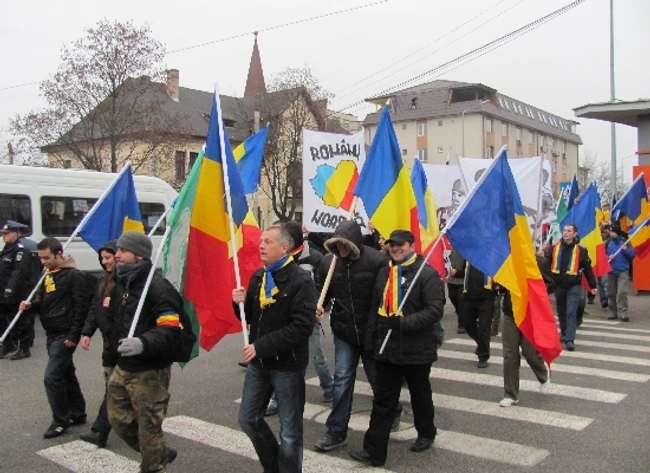 Aproximativ 200 de persoane au luat astăzi parte la marşul organizat de Asociaţia "Noua Dreaptă" şi Uniunea Vatra Românească la Târgu-Mureş pentru a marca Ziua Naţională a României.