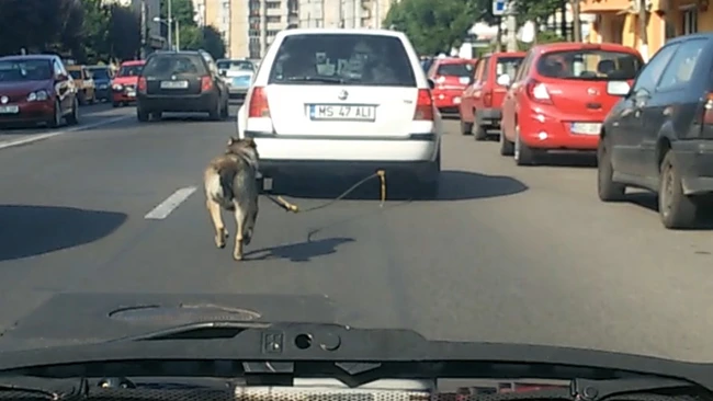 VIDEO Barbarie în Mureş: un om şi-a legat câinele de maşină şi l-a „târât“ prin oraş. Poliţiştii s-au autosesizat de pe Facebook