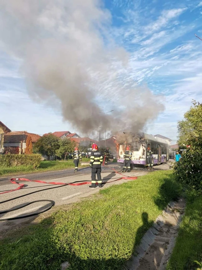 A luat foc un troleibuz metropolitan care făcea curse între Timișoara și Ghiroda