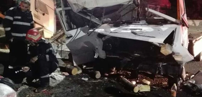 În accidentul de la Topolovăţul Mare (judeţul Timiş) au fost implicate o camionetă care transporta material lemnos şi un autoturism VW, care tracta o rulotă de vacanţă.