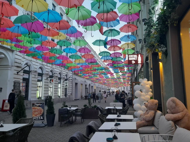 Foto Cea mai fotografiată stradă din Timişoara. Este acoperită de sute de umbrele colorate FOTO