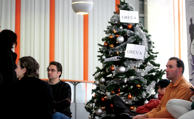 Afişe care anunţă grevă generală s-au alăturat ieri globurilor arginitii şi betelii strălucitoare din bradul de Crăciun aflat la intrarea în unul din sediile pe care Alcatel-Lucent România le are la Timişoara. Timp de două zile, 160 de angajaţi ai companiei protestează prin sistarea activităţii, pentru că nu au reuşit să ajungă la un consens cu conducerea companiei în privinţa indemnizaţiilor pentru concedieri şi a indemnizaţiei pentru transfer.