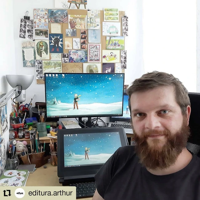 „Masterul a avut darul de a-mi da aripi şi de a-mi confirma că direcţia aleasă e bună. În plus, cursul a avut şi scopul de a încuraja studenţii să-şi creeze propriile lor poveşti. Până atunci nu scriam poveşti. Prima mea carte de poveşti a ajuns să fie publicată şi în chineză, dar a apărut şi în America şi în Canada. Apoi, a fost descoperită şi de Editura Arthur din România, care face parte din grupul editorial Art. Văzându-mi cartea publicată în Anglia, cei de la Art mi-au făcut oferta să lucrez cu ei. Am dat un test pentru Apolodor pe care l-am şi luat“, a mai povestit ilustratorul.