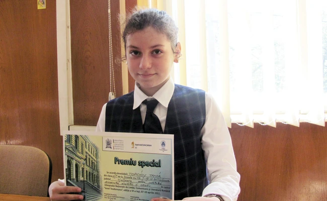 Tinerii timişoreni au obţinut anul acesta cinci din 100 de premii la Olimpiada Naţională de Limba Română. După şase ani, timişorenii s-au întors de la Olimpiada Naţională de Limba şi Literatura Română cu premiul întâi. atiana Topciov este elevă în clasa a V-a a Şcolii Generale nr. 24 din Timişoara. Deşi mama ei spune că acasă vorbeşte limba bulgară, ea a reuşit să îi impresioneze pe cei din juriul de la Iaşi cu aptitudinile ei de comunicare. Tânăra a obţinut premiul pentru „calitatea demersului analitic în discursul ei oral".