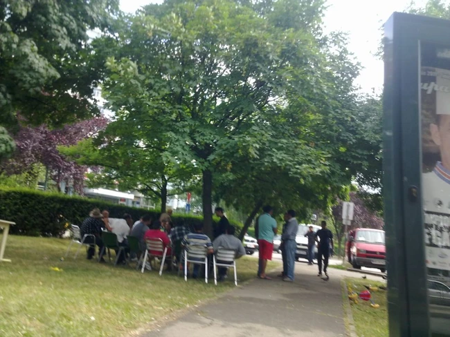 Cum ţiganilor nu li s-a permis să doarmă în spital, aceştia au transformat un parc din faţa spitalului în camping. Ei au adus de acasă scaune şi mese, iar unii dintre ei au ajuns să doarmă pe spaţiul verde.