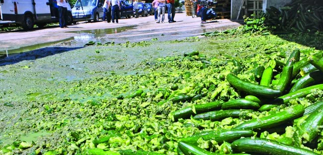 0Trei camioane cu 96 de tone de castraveţi şi fasole uscată stricată au fost depistate, sâmbătă seara, la Vama Nădlac. În timp ce o parte din marfă era stricată şi deteriorată, pe factură scria „Interzis consumului uman", în limba germană.