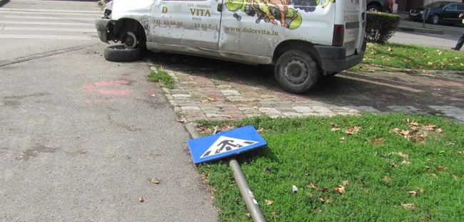 FOTO A luat din plin un semn de circulaţie, pentru a evita pietonii de pe zebră