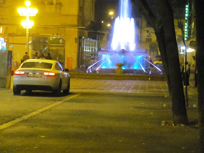 FOTO Atitudine de piţipoance. Au admirat Fântâna cu Peşti din Audi-ul parcat pe aleea pietonală