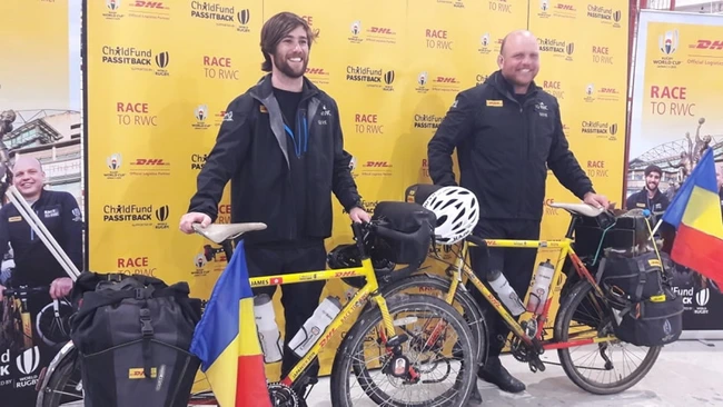 Ron Rutland şi James Owens, unul din Africa de Sud, celălalt din Hong Kong, au plecat din Londra spre Tokio, unde se va desfăşura Cupa Mondială de Rugby în acest an. Cei doi pasionaţi ai sportului cu balonul oval au ajuns la Timişoara, după ce au pedalat aproximativ 2.000 de kilometri.