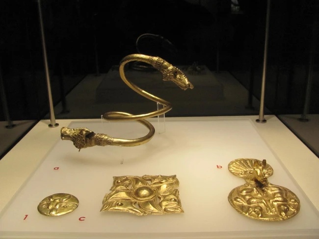 Muzeul Banatului contribuie cu 33 de piese din Epoca Bronzului până în secoulul al V-lea. Sunt descoperiri în urma săpăturilor arheologice în zona Banatului. Printre piese se află şi Coiful de la Găvojdia, datat în secolul 5-4 înainte de Hristos.