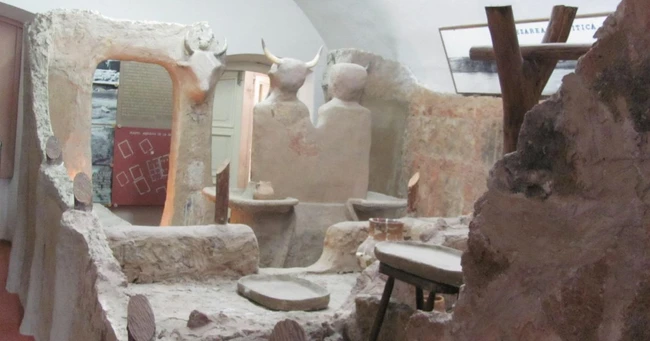 În altarul sunt două statui lipite, o zeitate feminină şi un taur, simboluri ale fecundităţii şi fertilităţii pentru cultura vremii.