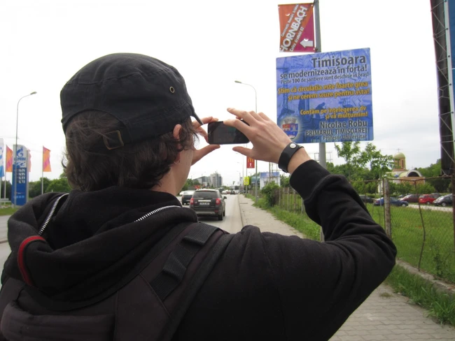 „Timişoara se modernizează în forţă! Peste 100 de şantiere sunt deschise în oraş! Ştim că circulaţia este foarte grea şi ne cerem scuze pentru asta. Contăm pe înţelegerea dumneavoastră şi vă mulţumim”, este mesajul semnat de primarul Timişoarei, Nicolae Robu, profesor universitar, pe panourile de la intrările în oraş.