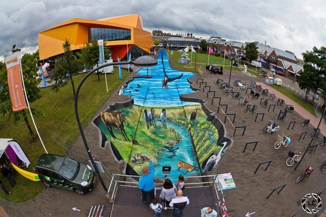 Acesta are 140 de metri şi a fost realizat în oraşul olandez Leystad, în cinci zile. Alături de Mrvelj au mai lucrat alţi patru artişti graffiti din Mexic, Germania şi Olanda.