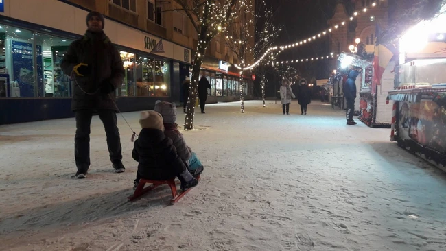 Autorităţile locale încă nu au reuşit să îndepărteze peste tot în oraş grămezile de zăpadă, adunate din decembrie, că oraşul a fost din nou acoperit de omăt.