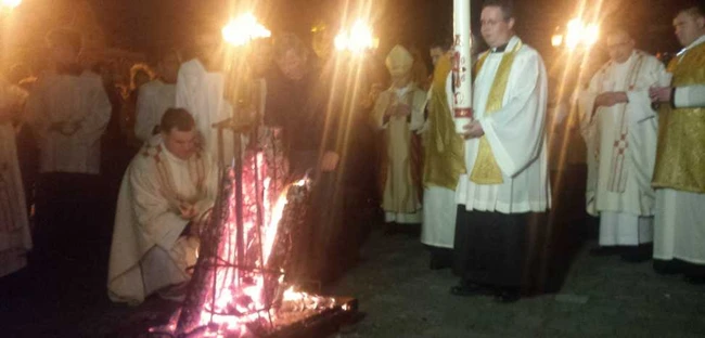 Sâmbătă seară, de la ora 22.00, în faţa Catedralei Romano-Catolice din Piaţa Unirii a avut loc ceremonia "Binecuvântării focului". Conform tradiţiei, nu s-a folosit brichetă sau chibrite pentru aprinderea focului, ci un cremene.
