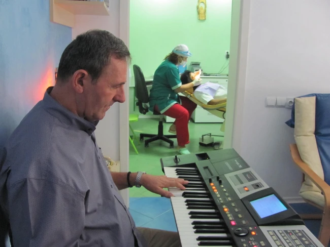 Un cabinet stomatologic din Timişoara oferă un serviciu ieşit din comun. Pacienţii care se duc la dentist au parte de un concert live care îi face să treacă mai uşor peste teamă. Artistul de la orgă este Gheorghe Iovu, cunoscut compozitor timişorean de muzică terapeutică, ce are la activ 11 albume şi peste 600 de concerte.