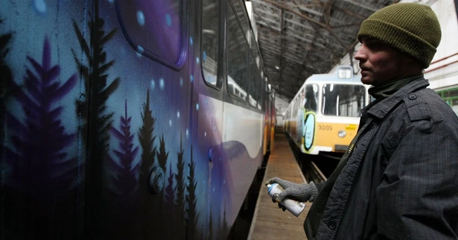 Înarmaţi cu tuburi de vopsele, doi grafferi din Timişoara au avut astăzi de lucru în depoul de tramvaie al Regiei Autonome de Transport în Comun Timişoara. Instituţia a decis ca tramvaiul cu care Moş Crăciun se va plimba între 20 şi 24 decembrie prin oraş să aibă ornamente de sezon în stil graffiti. Alex Neculai şi Marcel Savescu au umplut pereţii unei garnituri cu stele căzătoare, brazi şi fulgi.