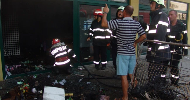 Pompierii au intervenit cu două autospeciale şi au reuşit cu greu să stingă focul. "După primele verificări, incendiul a pornit de la un scurt circuit electric. A ars puternic şi a distrus toată marfa de la parter. Exista chiar riscul de explozie, temperatura dinăuntru fiind extrem de ridicată", declara unul dintre pompieri. Tot în seara zilei de 25 august, în jurul orelor 19, a reizbucnit şi incendiul din groapa de gunoi, pompierii fiind nevoiţi să facă faţă ambelor focuri, mai arată sursa citată anterior.