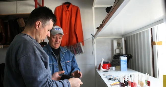 "Afacerea merge bine, mai ales acum că e criză. Timişorenii au stat, şi-au recalculat bugetele şi au decis să trebuie să taie de undeva din cheltuieli. Nu poţi să umbli pe stradă fără pantofi sau o haină. Noi avem marfă bună la preţuri foarte mici", spune Ioan Dancu, gestionar al afacerii.