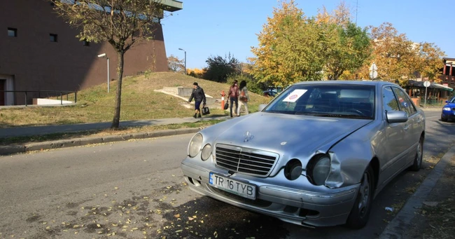 Mercedes distrus de reprezentanţii ADP şi ai Poliţiei Locale. Organele legii au fugit de la locul faptei