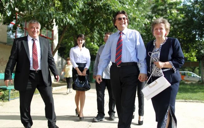 Nicolae Robu, candidatul USL, a venit la vot cu soţia, copiii şi... Titu Bojin