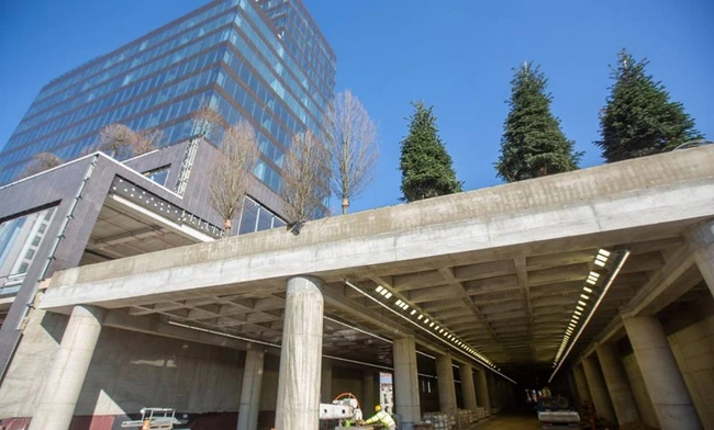 Deasupra parcării va fi amenajat parcul suspendat al proiectului Openville, iar deasupra pasajului vor fi amenajate porţiuni de vegetaţie, arbuşti şi gazon, elemente care vor face parte din acest parc.