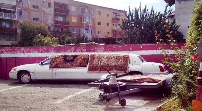 "Limuzina se afla într-o spălătorie de maşini din Lugoj. Probabil că acolo se spală şi covoare. Se practică. Am trecut cu maşina pe acolo şi am văzut limuzina. Am tras pe dreapta şi am zis că trebuie să fac o poză. e prea tare", a spus autorul fotografiei. Poza a devenit virală pe reţelele de socializate.