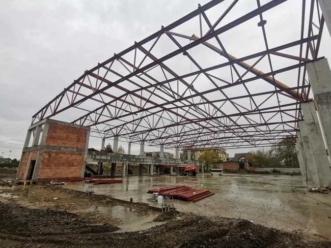 Conform panoului de pe șantier, construcția a demarat în 27 martie 2023, iar termenul de execuție a lucrărilor, prevăzut în autorizație, este zece luni și jumătate. Asta înseamnă că prin februarie 2024 ar trebuie să fie gata. Cert este că, spre deosebire de Mica Polivalentă, aici se lucrează.