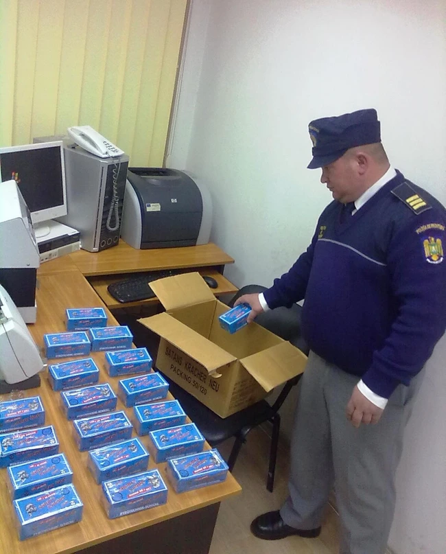 Poliţiştii de la Punctul de Trecere a Frontierei Cenad au descoperit în autoturismul unui cetăţean român 2.400 petarde, ce urmau a fi comercializate în ţară. Acesta încerca să intre în ţară în jurul orei 22.30, venind din Ungaria.