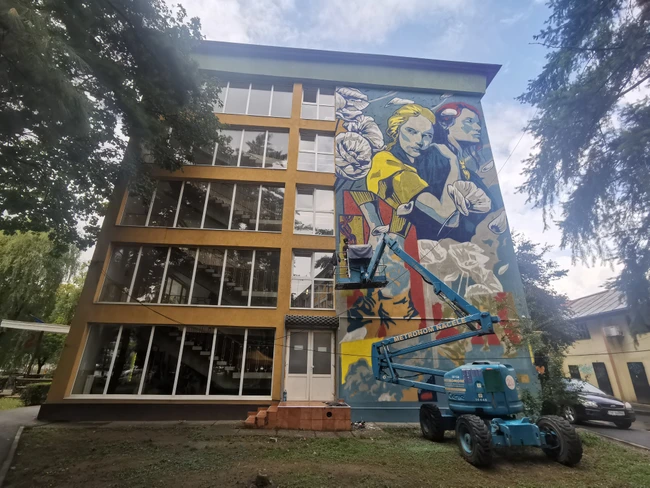 Video Pictură murală uriașă, de Ziua Ucrainei, pe zidul unui cămin studențesc din Timișoara VIDEO