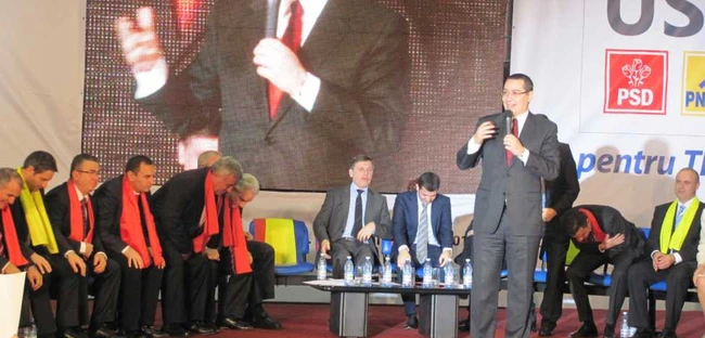 Liderii USL s-au întâlnit cu fanii lor în Sala Olimpia din Timişoara. Aproximativ 2.000 de persoane s-au înghesuit să asculte alocuţiunile membrilor triplei alianţe PSD, PNL-PC.