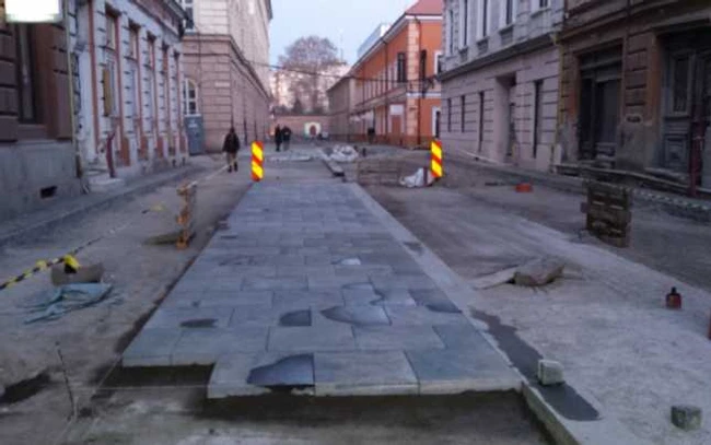 Odată cu finalizarea săpăturilor şi schimbarea reţelelor subterane din centrul istoric, firma care lucrează în Cetate a trecut la pasul următor, montarea pavajului. Chiar dacă pare că greul a trecut se pare că de abia acum începe. Conform proiectului străzile din centrul istoric ar fi trebuit să fie pavate cu două tipuri de piatră cubică, un tip de piatră mai mică pe margini şi o piatră mai mare în rest. Pentru că s-a pus problema confortului pietonilor, în special al doamenlor pe tocuri, primarul Nicolae Robu a solicitat modificarea proiectului iniţial şi introducerea, pe patru străzi intens circulate a unui nou tip de pavaj, format din plăci mari de granit, care să faciliteze mersul pe tocuri.