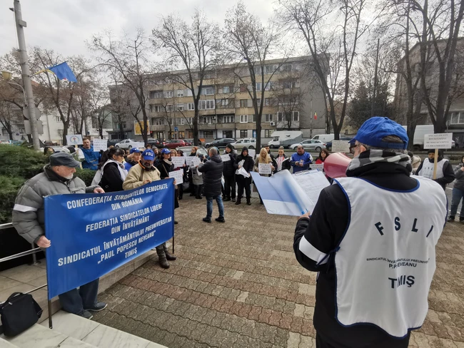 La protestul din Timișoara au participat în jur de 50 de persoane care au avut asupra lor pancarte, iar membrii sindicatului au înmânat prefectului de Timiș o petiție cu toate revendicările.