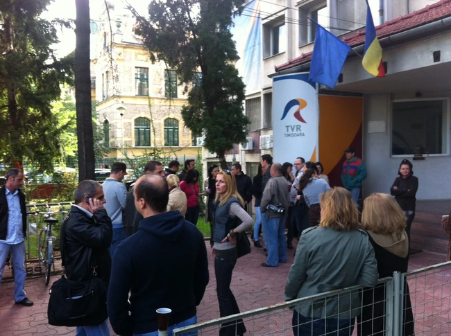 0Zeci de angajaţi ai studioului regional TVR Timişoara au ieşit în curtea studioului de pe strada Pestalozzi, pentru un protest spontan